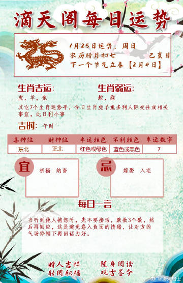 滴天居士:对下周的解析与建议【1月25到1月31】