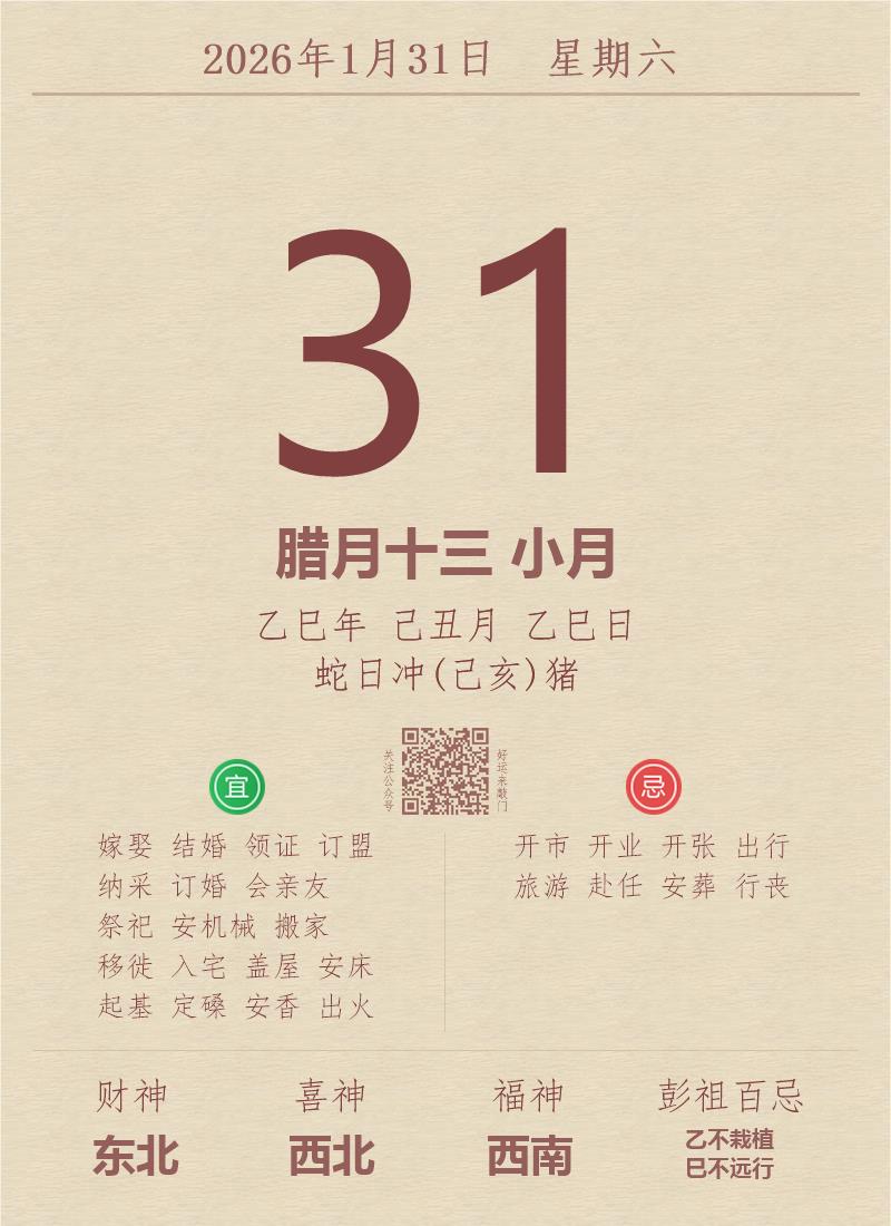 公历:2026年1月31日 星期六