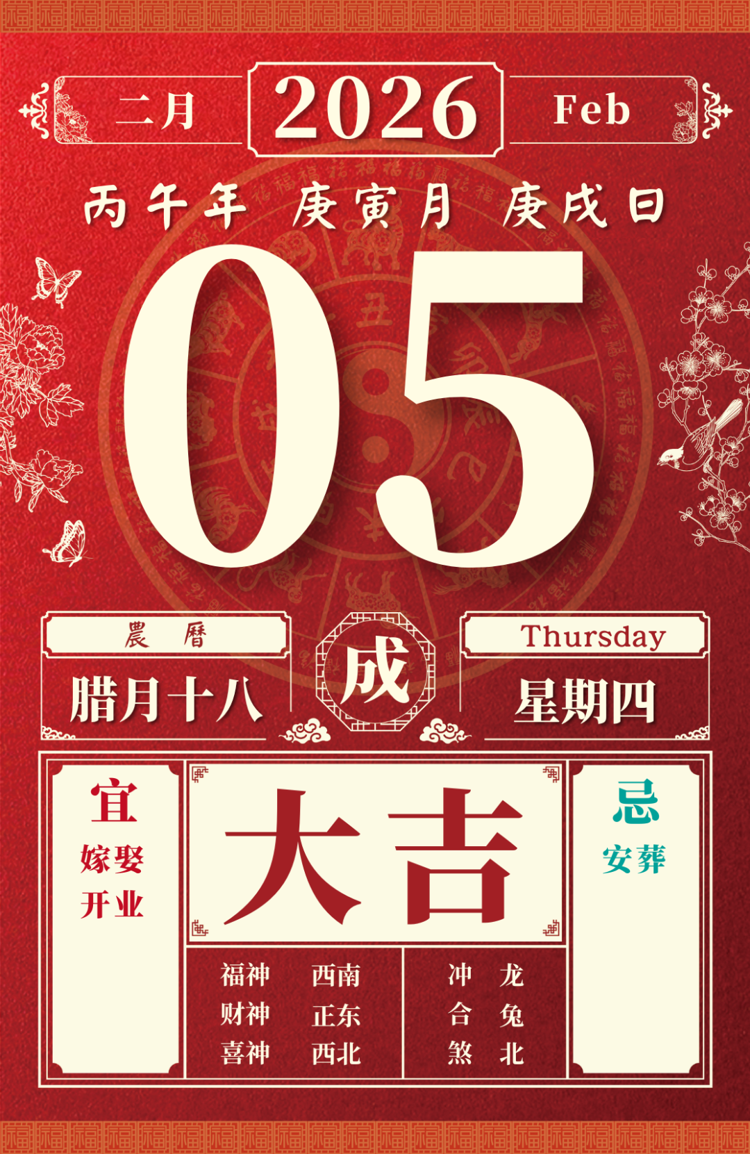 旺运方位:此日利于朝东方出行;西南方不宜。