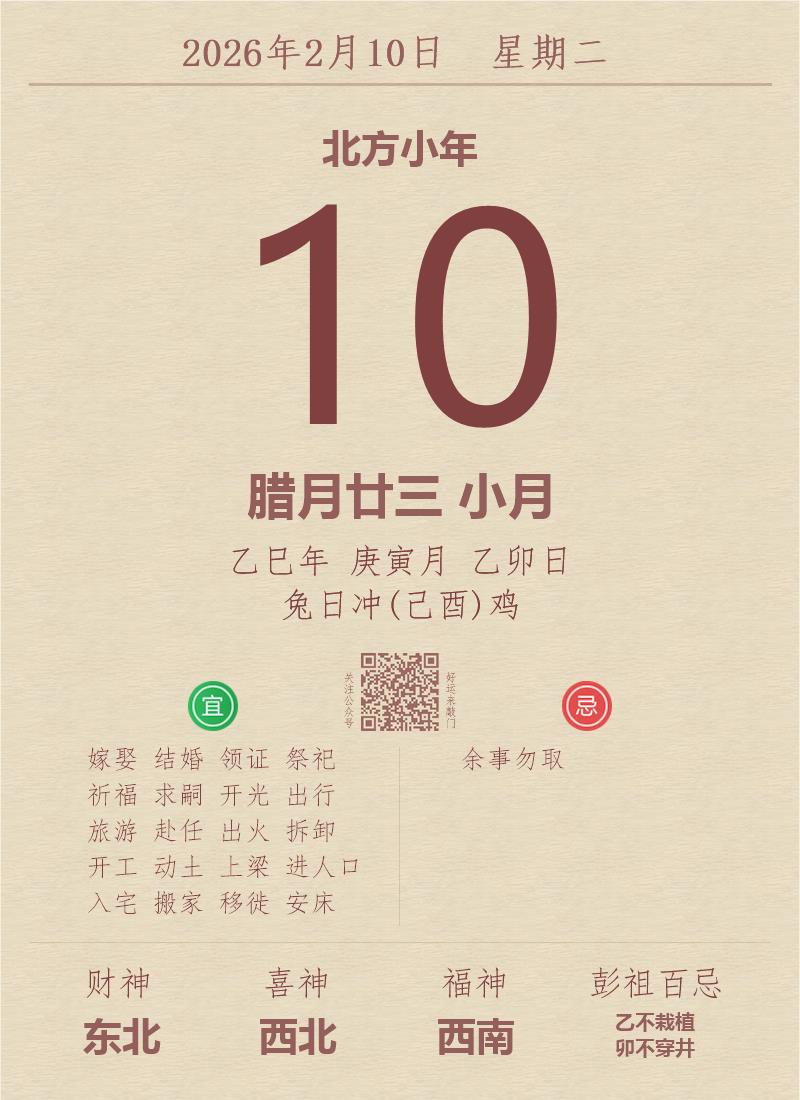 公历:2026年2月10日 星期二