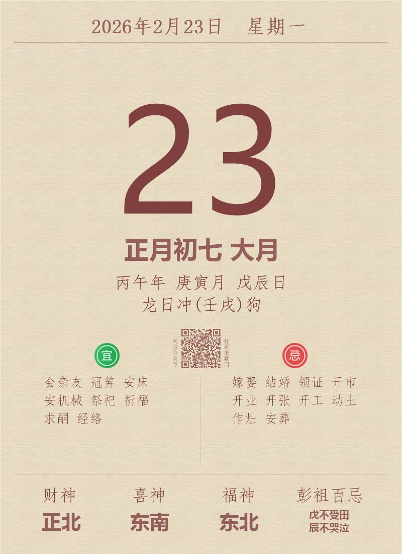 公历:2026年2月23日 星期一