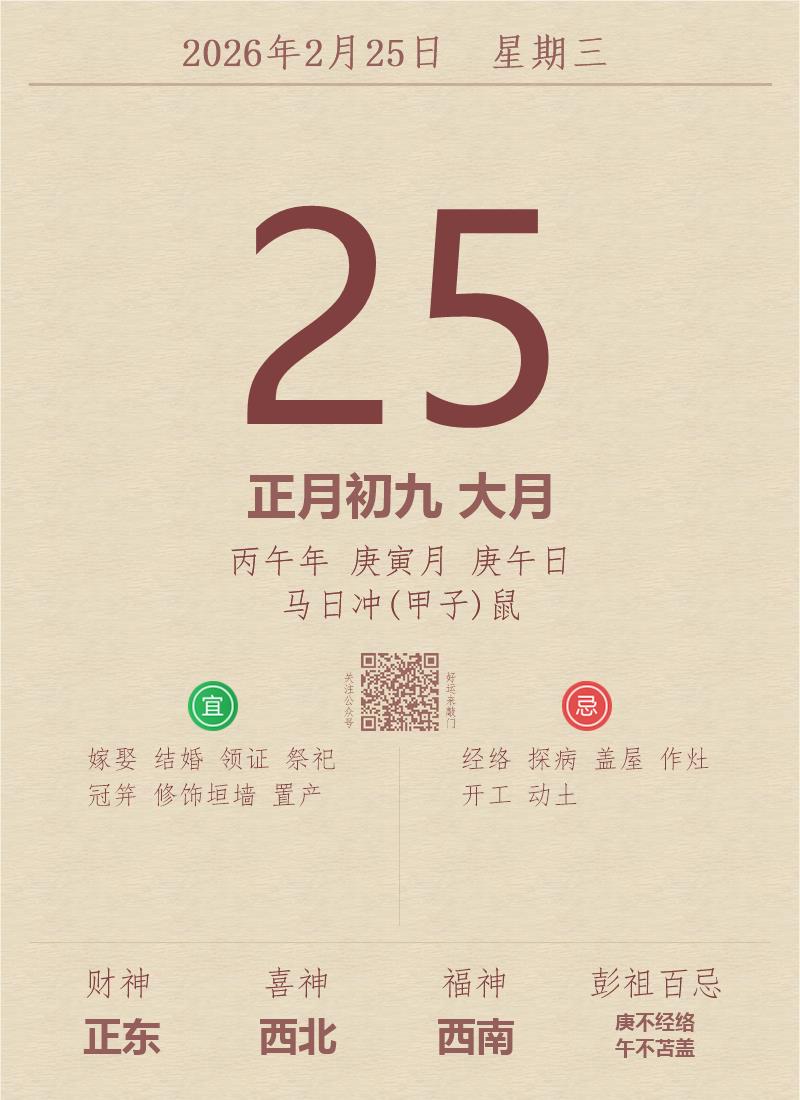 公历:2026年2月25日 星期三