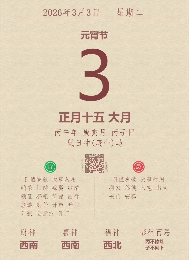 公历:2026年3月3日 星期二
