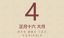 2026年3月4日,星期三,农历正月十六 (丙午年庚寅月丁丑日),法定工作日。