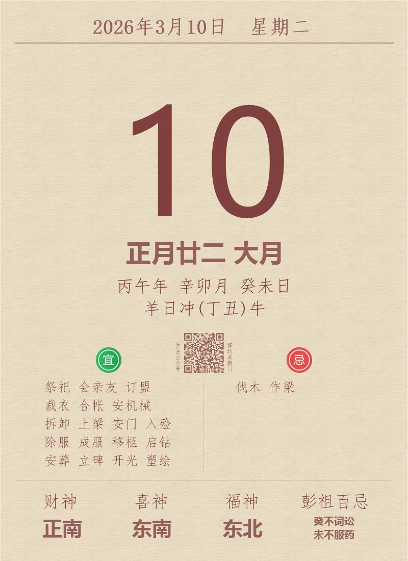 公历:2026年3月10日 星期二