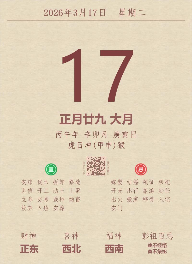 公历:2026年3月17日 星期二