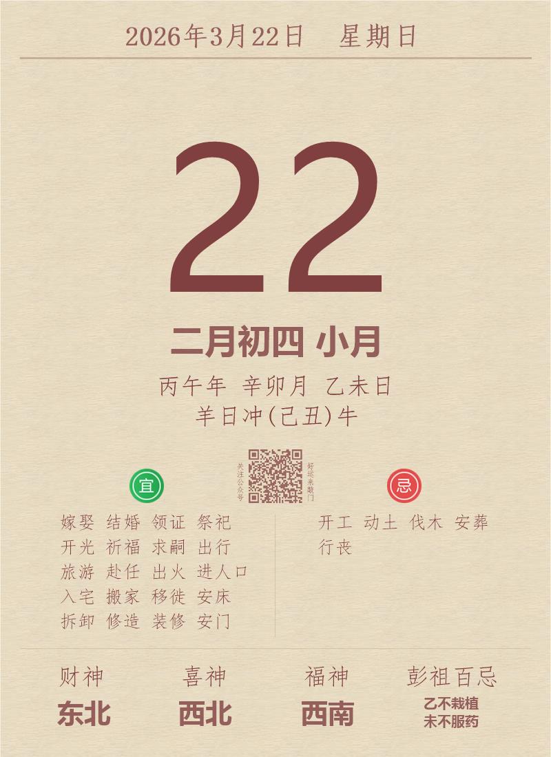 时宜:祈福 求嗣 纳采 嫁娶 出行 求财 开市 交易 安床 赴任