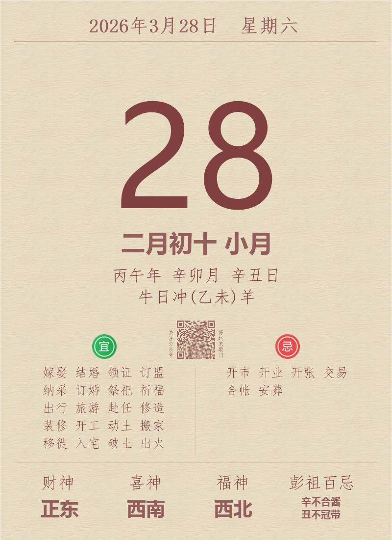 公历:2026年3月28日 星期六