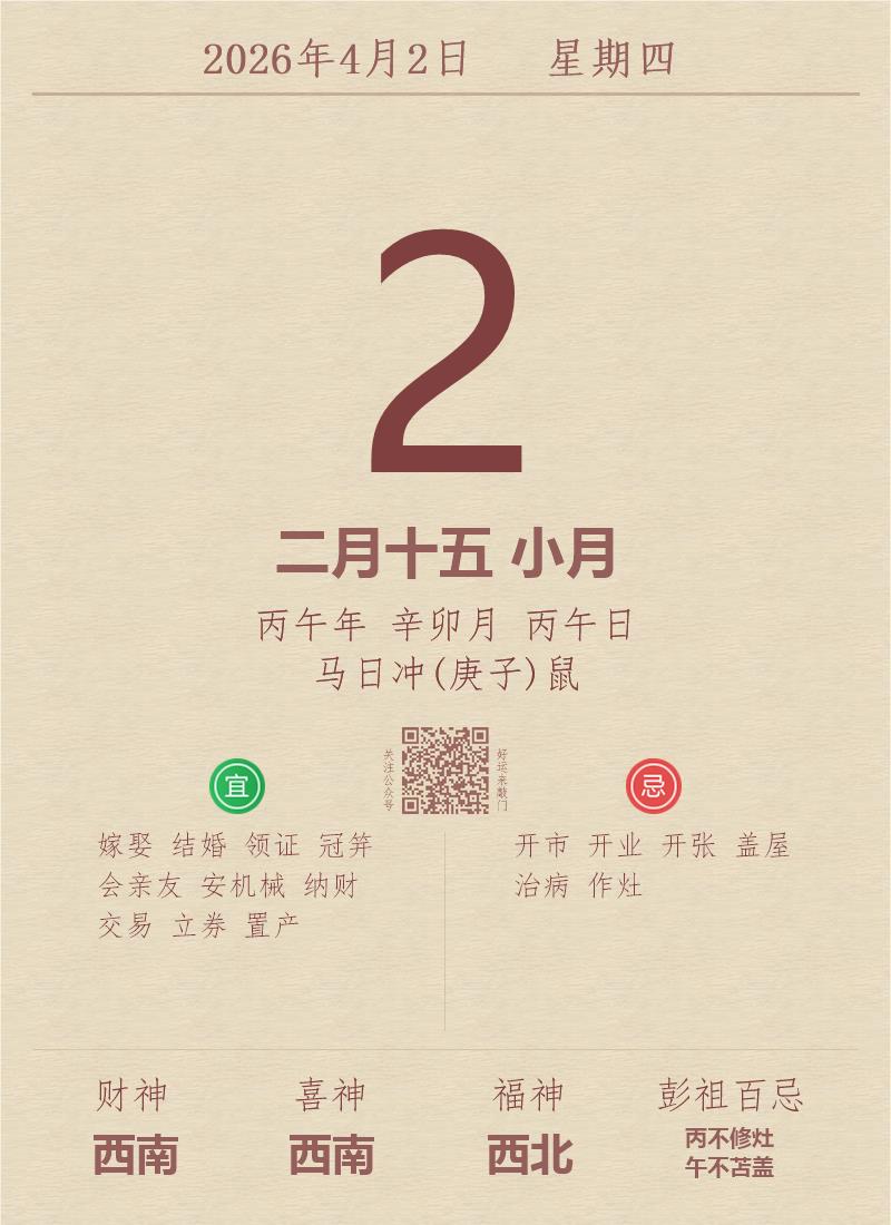 公历:2026年4月2日 星期四