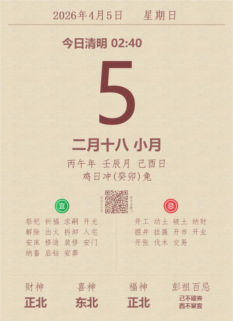 公历:2026年4月5日 星期日