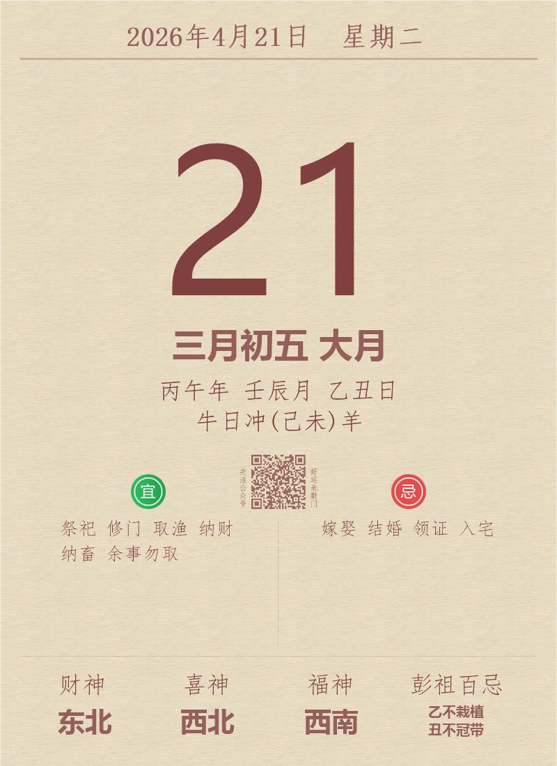 公历:2026年4月21日 星期二