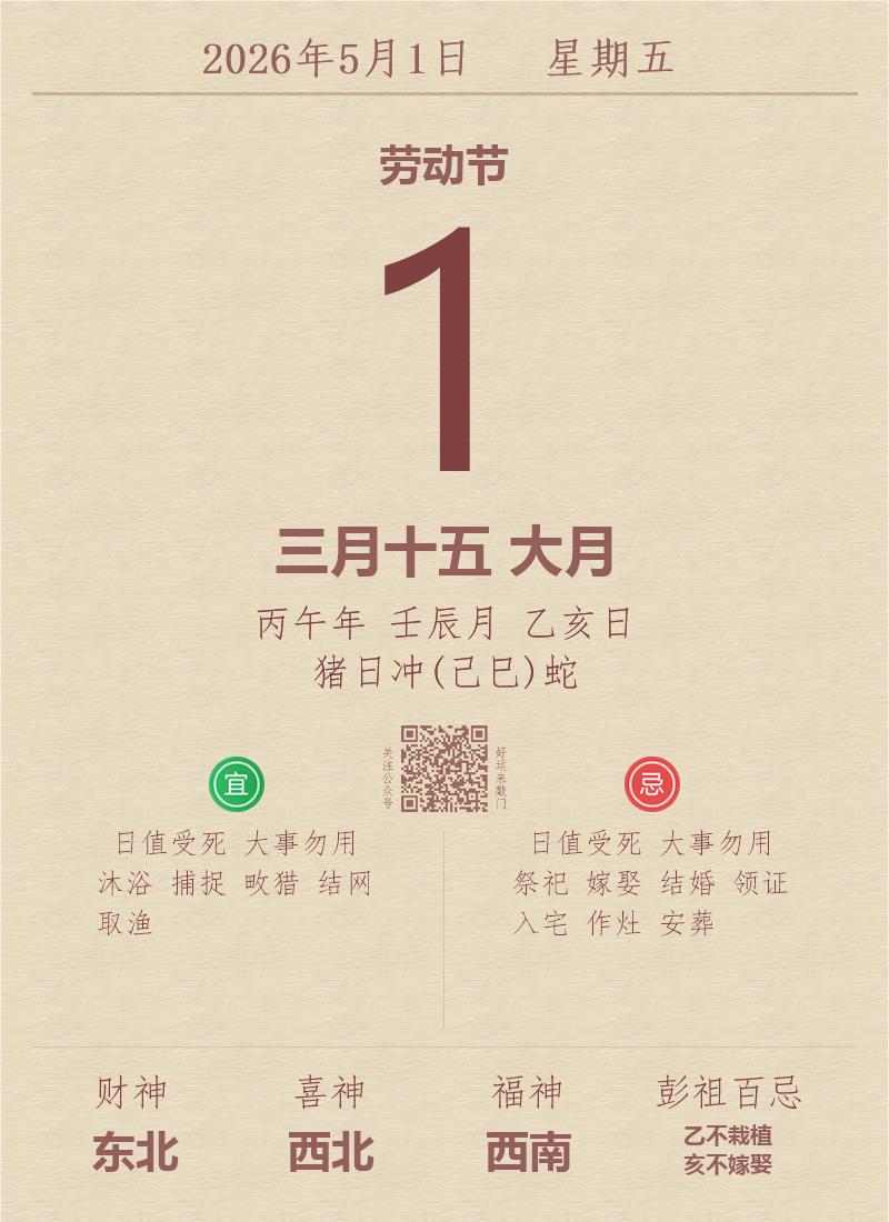 时宜:祭祀 祈福 酬神 出行 求财 见贵 纳采 嫁娶 修造 安葬 赴任