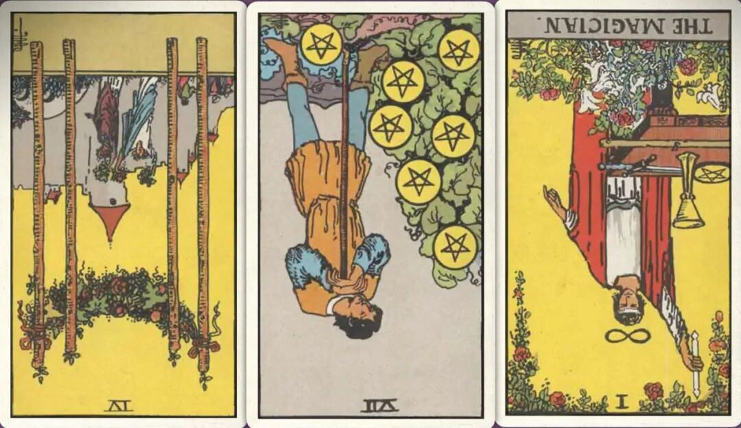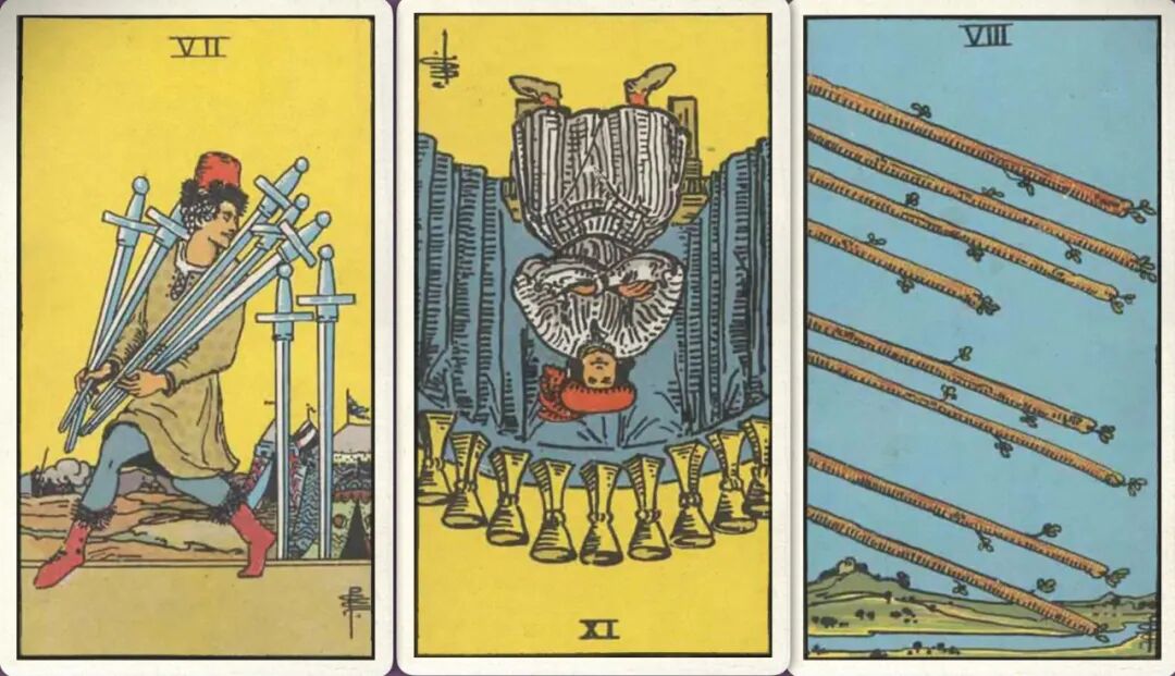 牌:权杖六- 宝剑八+ 权杖骑士-