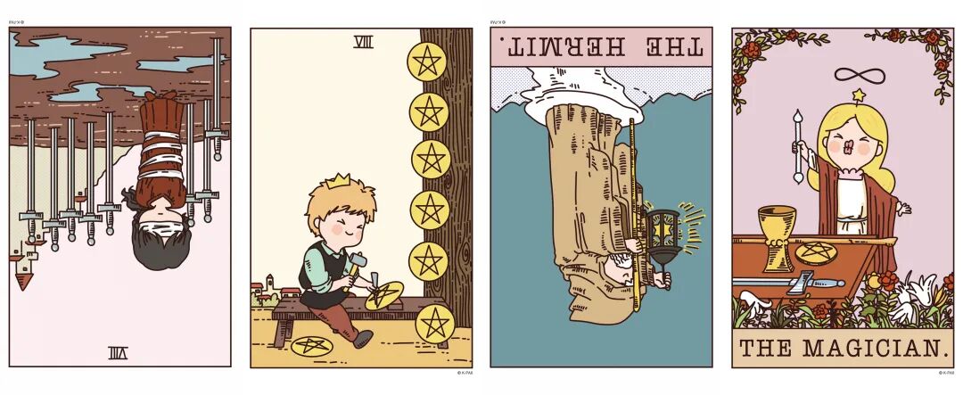 逆位宝剑八、正位星币八