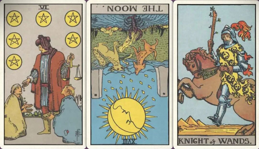 牌:星币皇后- 圣杯皇帝+ 权杖骑士+