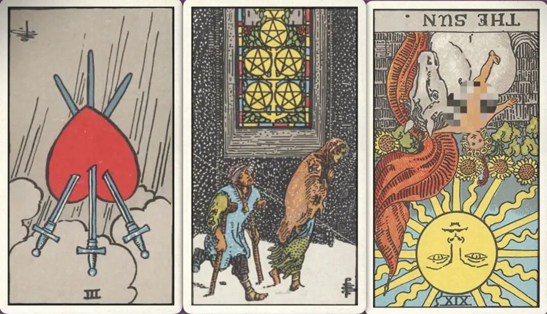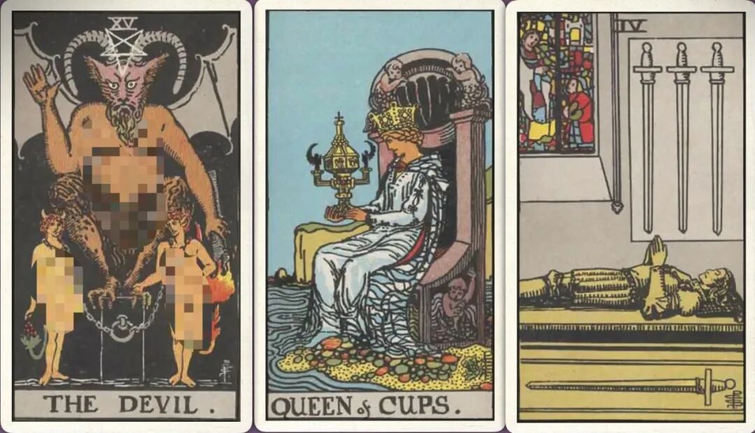 牌:恶魔+ 圣杯皇后+ 宝剑四+