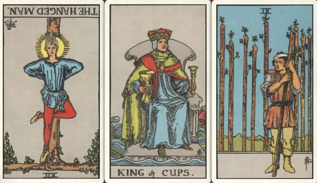 牌:倒吊人- 圣杯皇帝+ 权杖九+