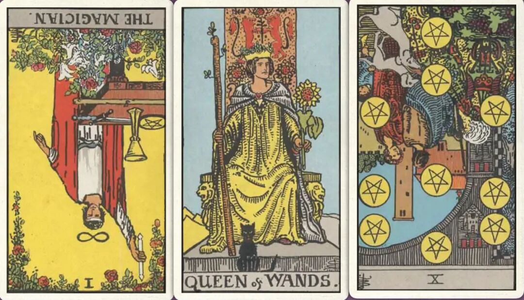 下半年:权杖七- 圣杯皇后- 倒吊人-