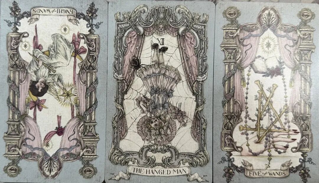 牌:权杖骑士- 倒吊人+ 权杖五+