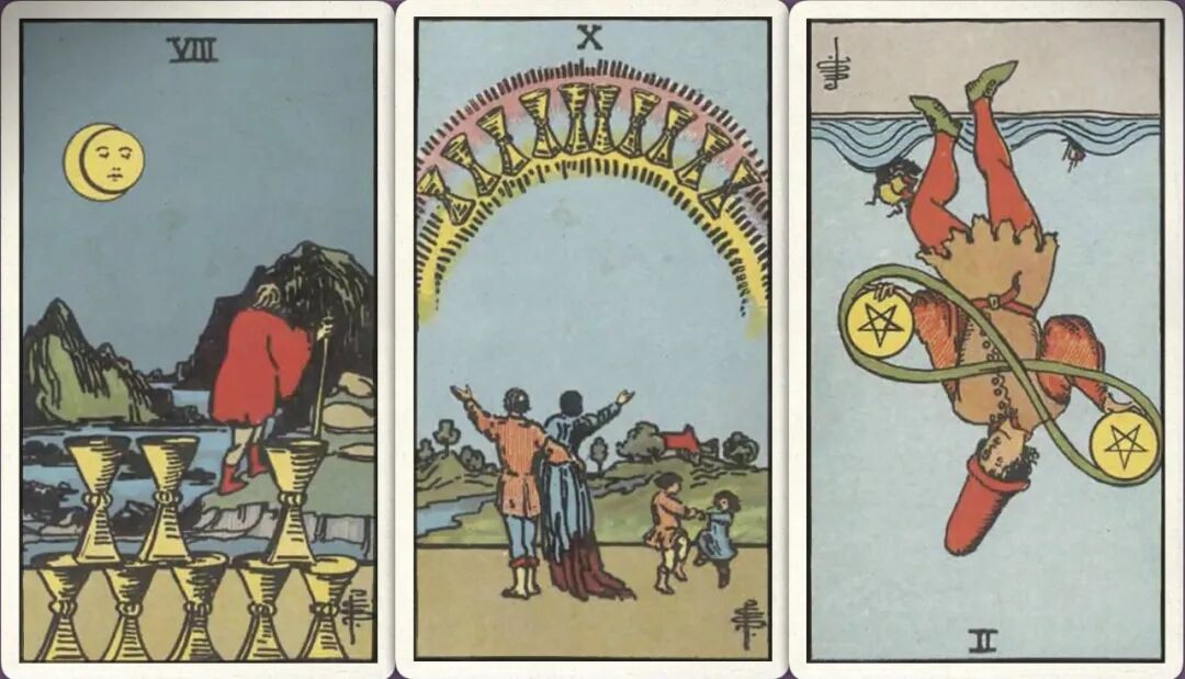 上半年:圣杯骑士- 权杖五- 权杖皇后-