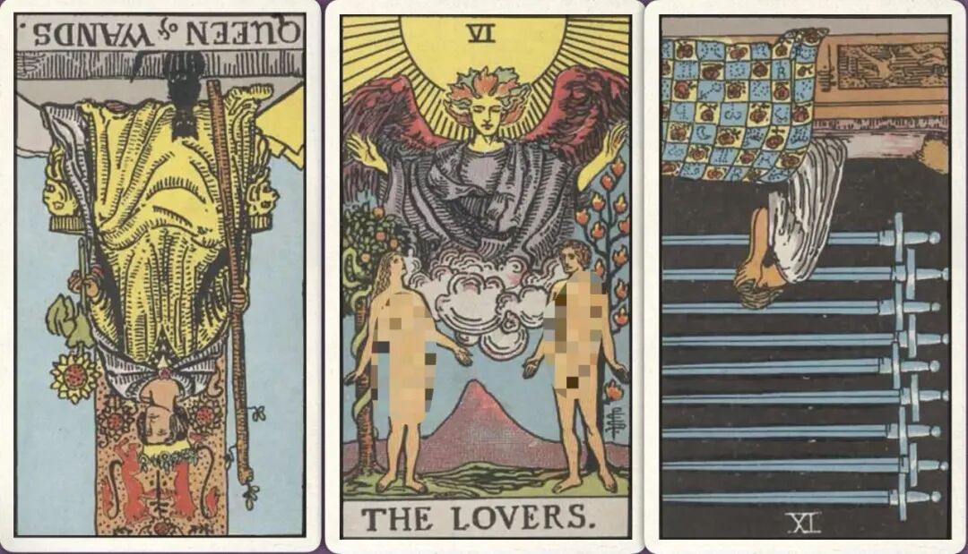 牌:权杖皇后- 恋人+ 宝剑九-