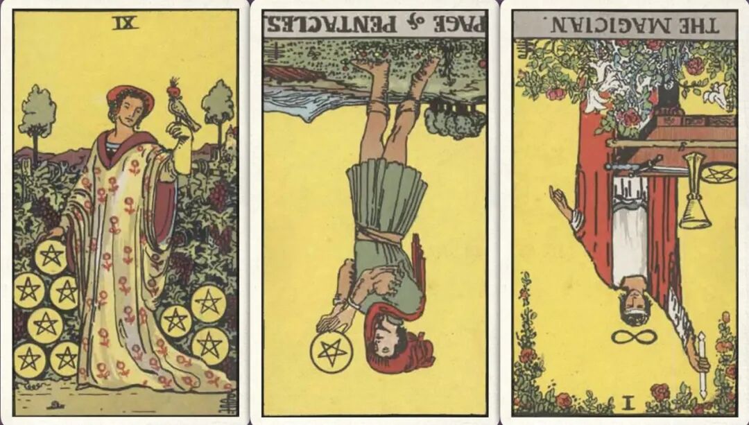 牌:圣杯十+ 星币三+ 宝剑皇后-