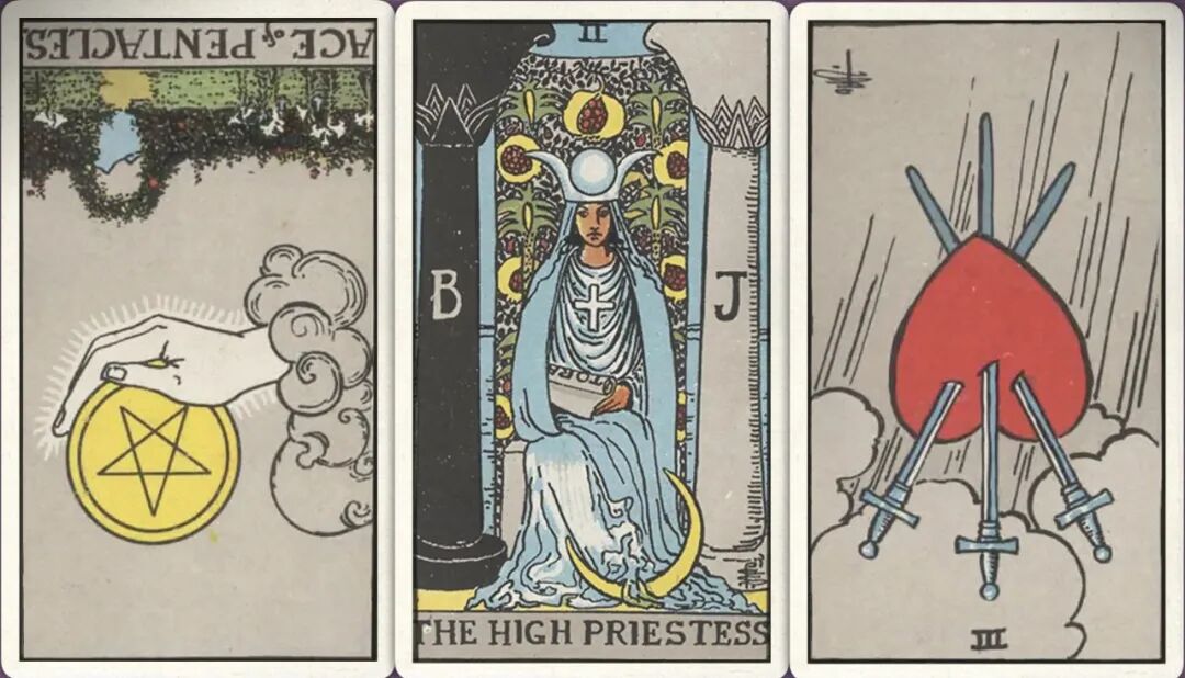 牌:星币ace- 女祭司+ 宝剑三-