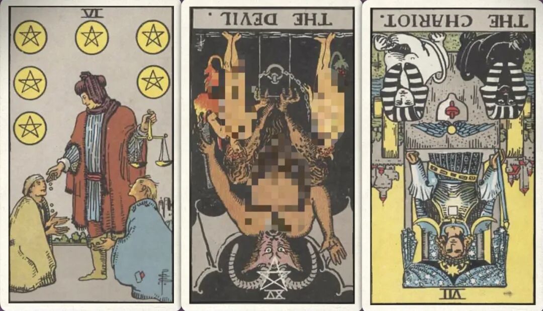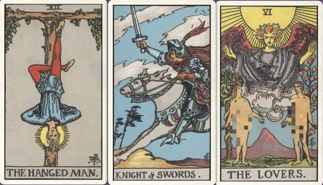 牌:倒吊人+ 宝剑骑士+ 恋人+