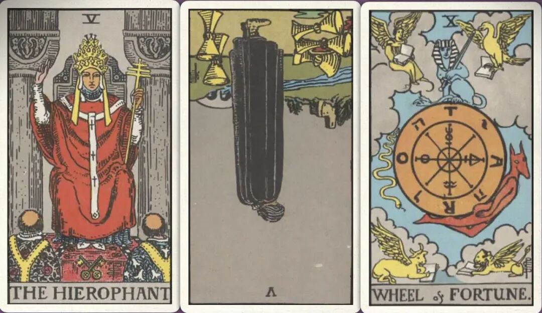 牌:教皇+ 圣杯五- 命运之轮+