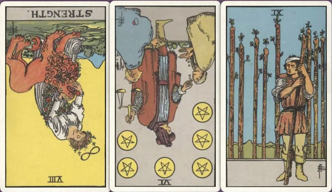 牌:力量- 星币六- 权杖九+