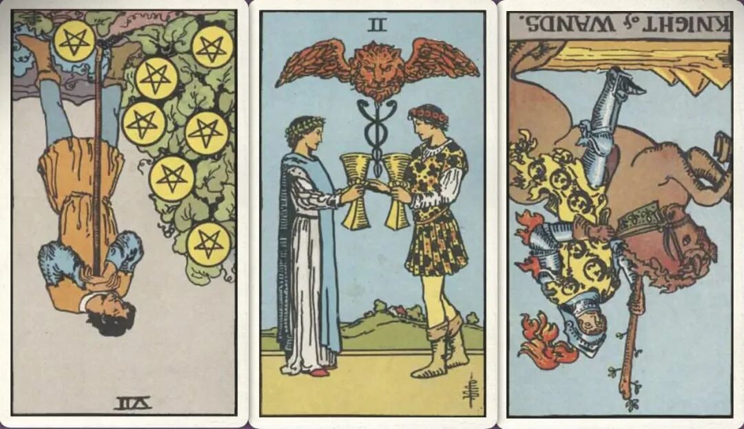 牌:星币骑士+ 权杖三+ 圣杯四-