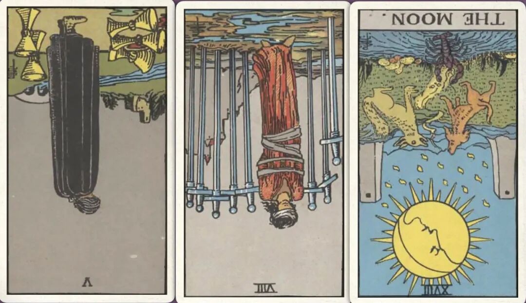 牌:圣杯五- 宝剑八- 月亮-