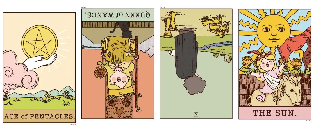 正位星币首牌、逆位权杖皇后