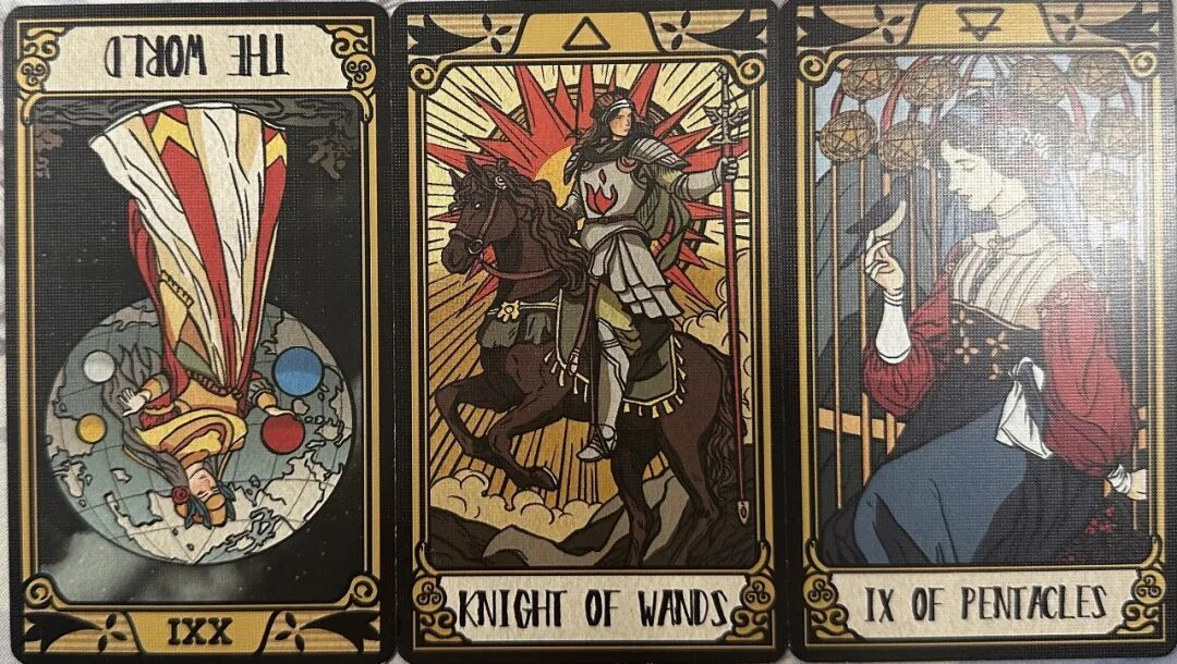 牌:圣杯八+ 宝剑皇帝+ 宝剑骑士+