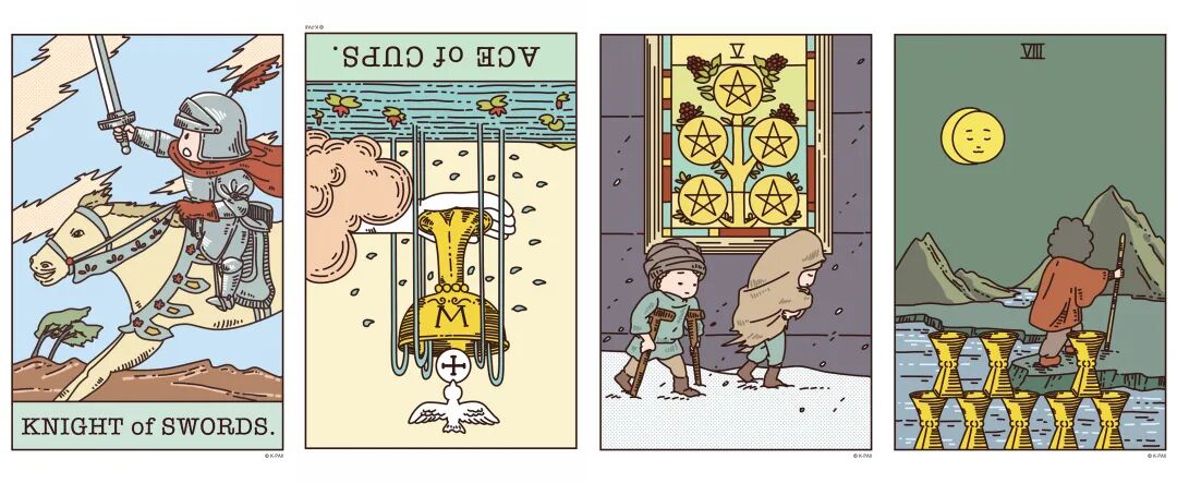 正位宝剑骑士、逆位圣杯首牌