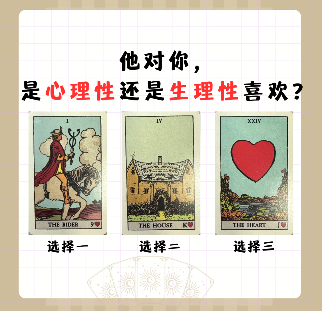 规则:保持内心安静的状态,从下面三张牌中凭感觉选一组你比较有感觉的,选好后下翻查看答案。