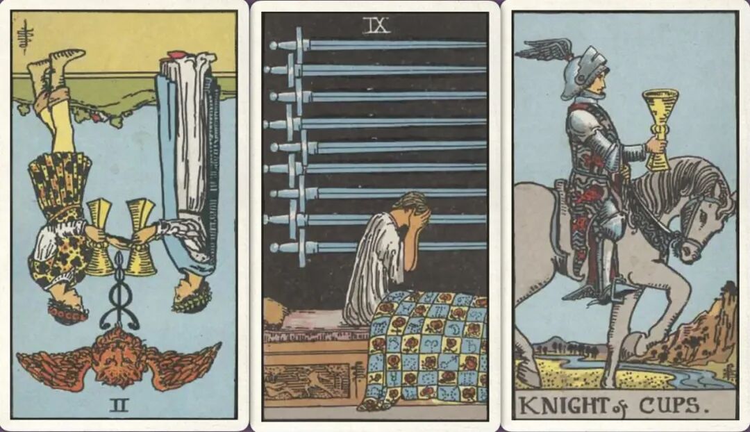 牌:圣杯二- 宝剑九+ 圣杯骑士+