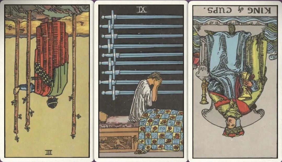 牌:权杖三- 宝剑九+ 圣杯皇帝-
