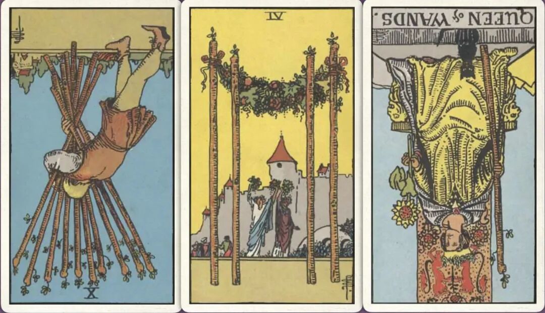 牌:权杖十- 权杖四+ 权杖皇后-
