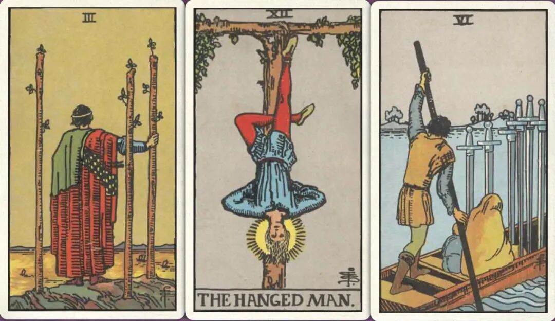 牌:权杖三+ 倒吊人+ 宝剑六+