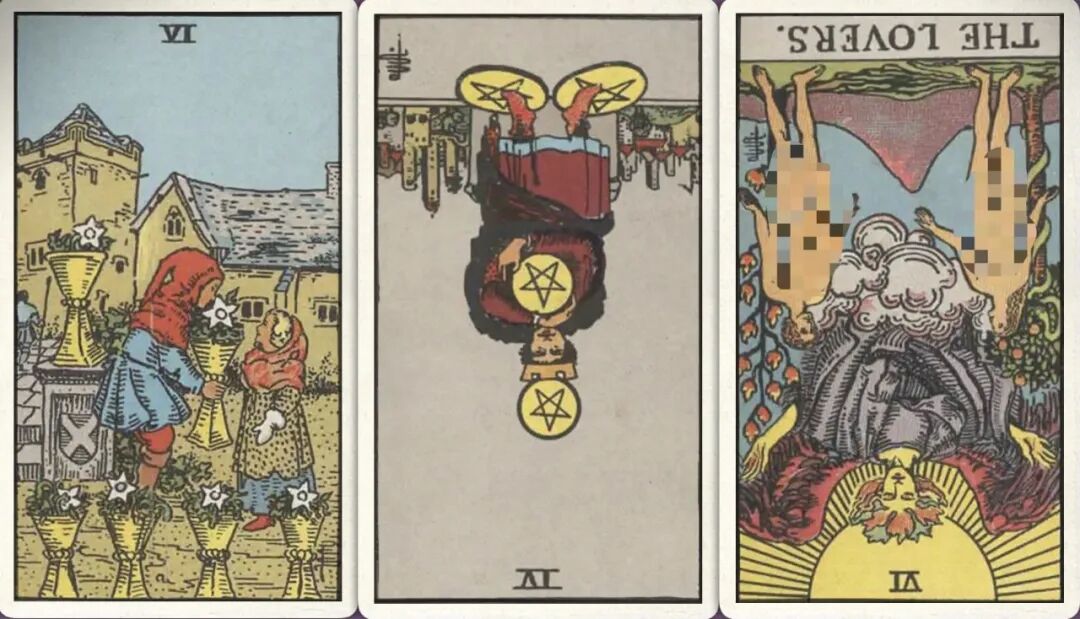 牌:圣杯六+ 星币四- 恋人-