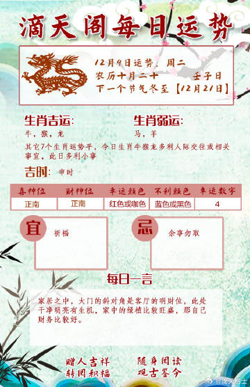 滴天居士每周生肖运势(12.8-12.14)