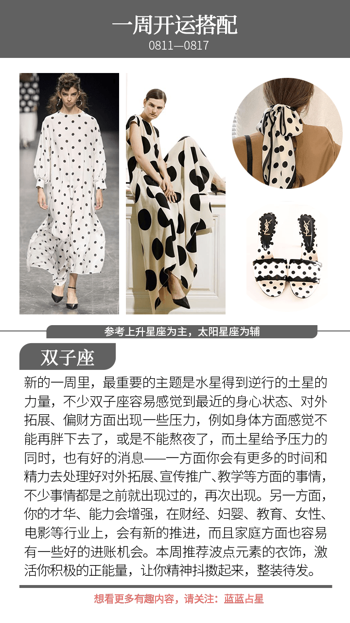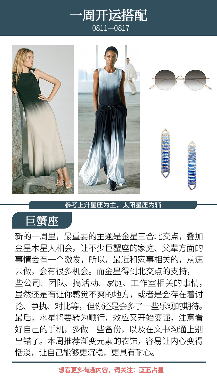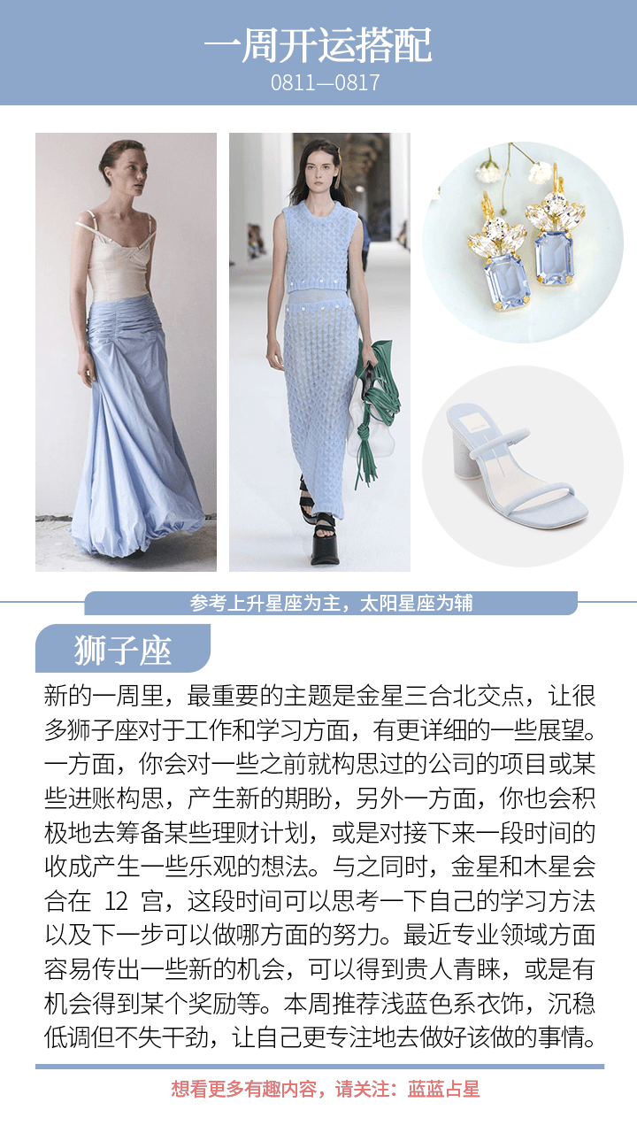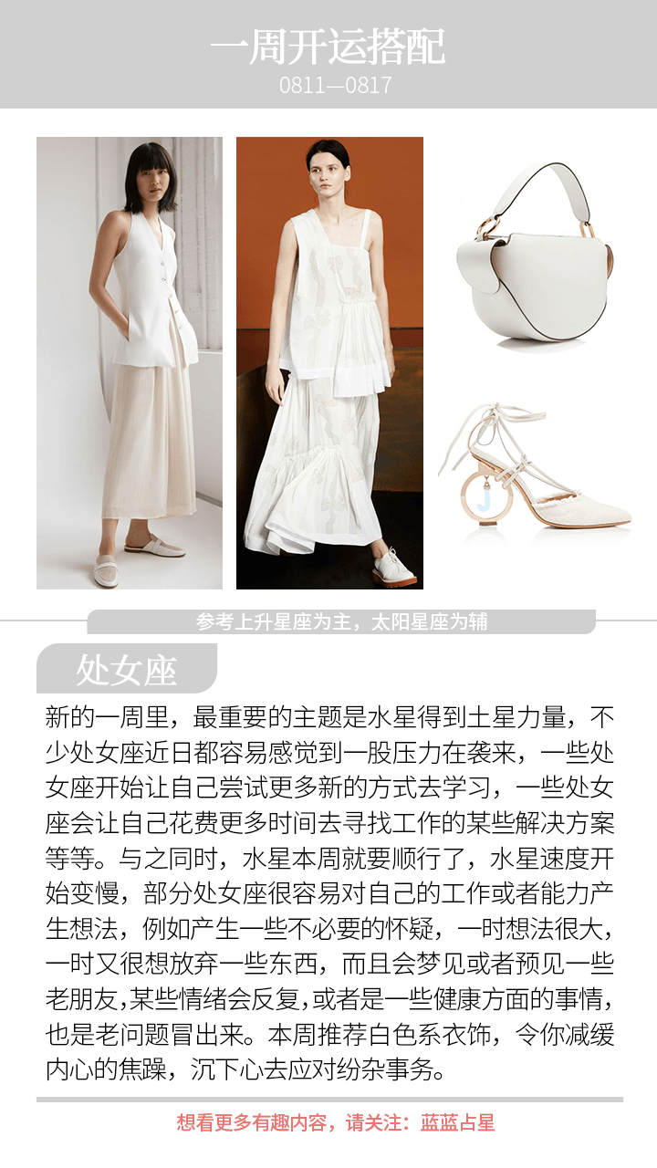 而(上升星座或太阳星座)处女、双子本周还有点混沌感,不急,迟一点你会开始忙碌起来,会更乐意去尝试一些新的事情。