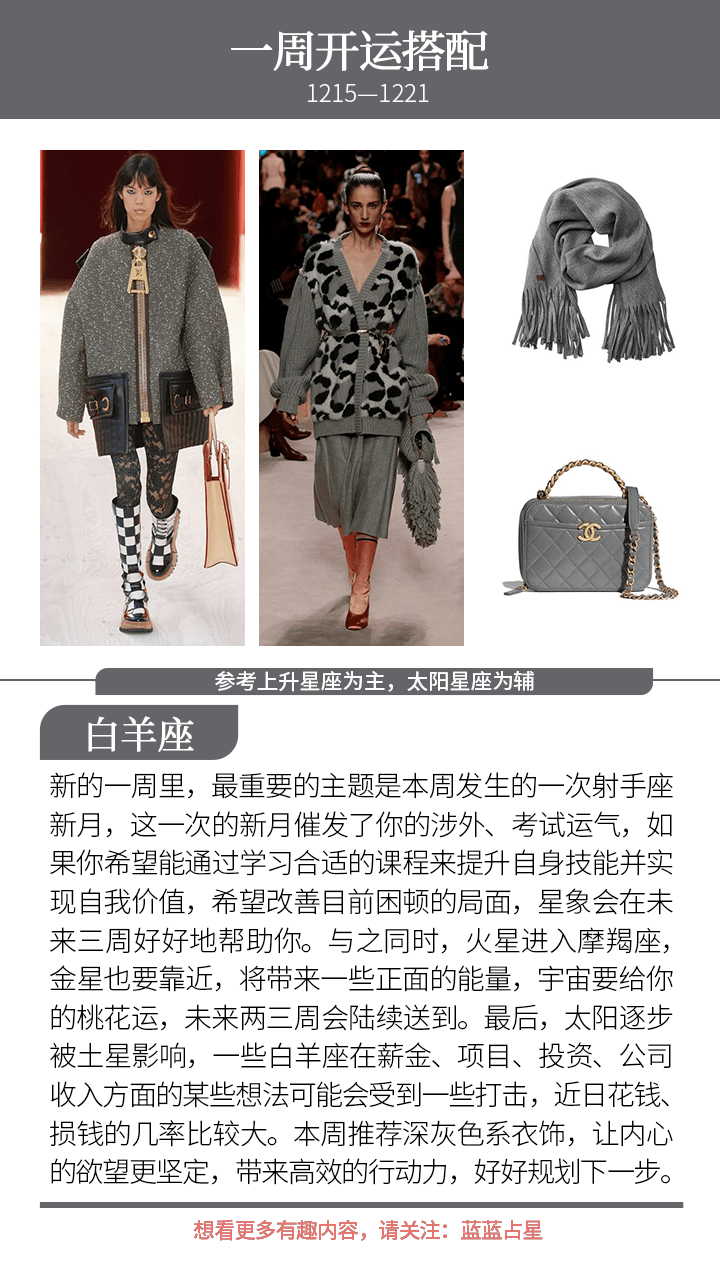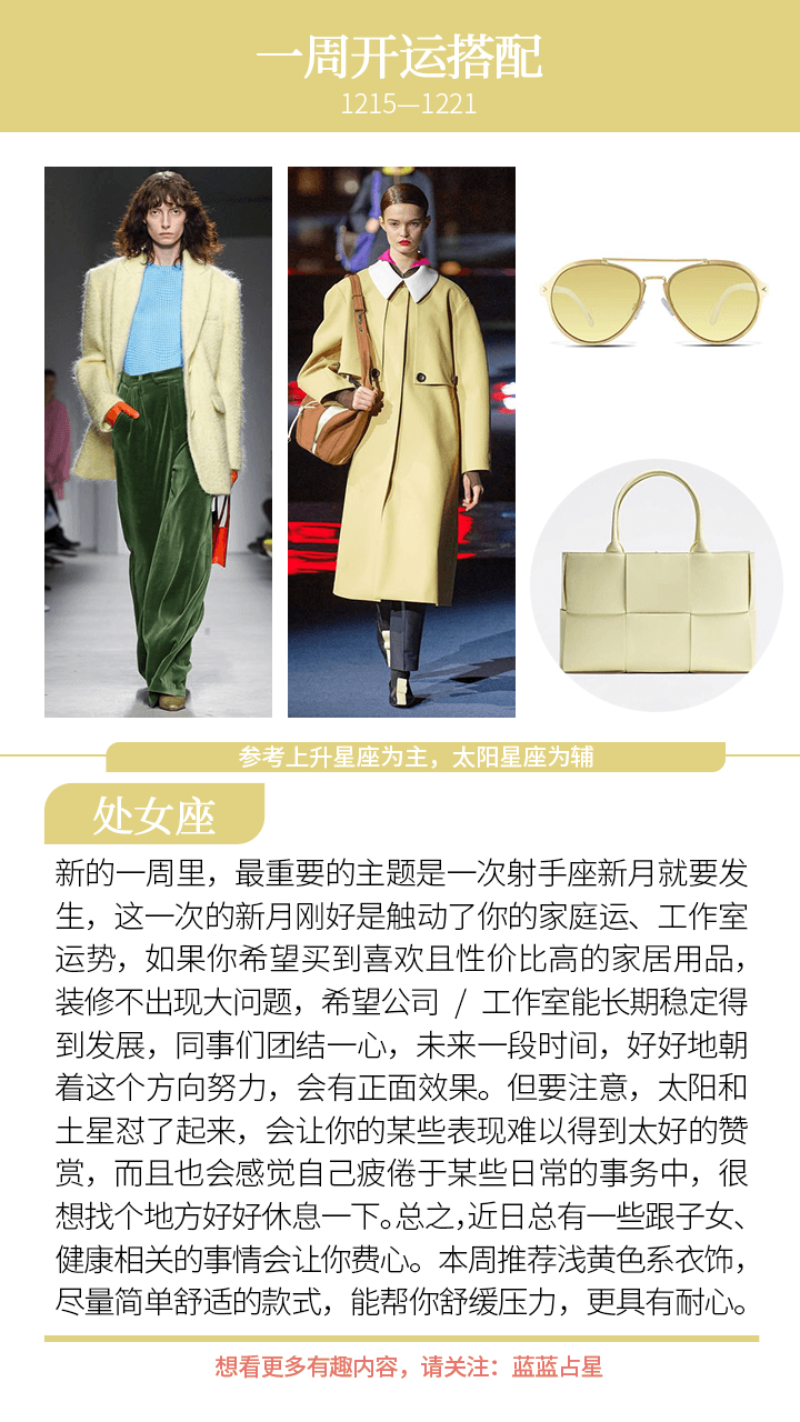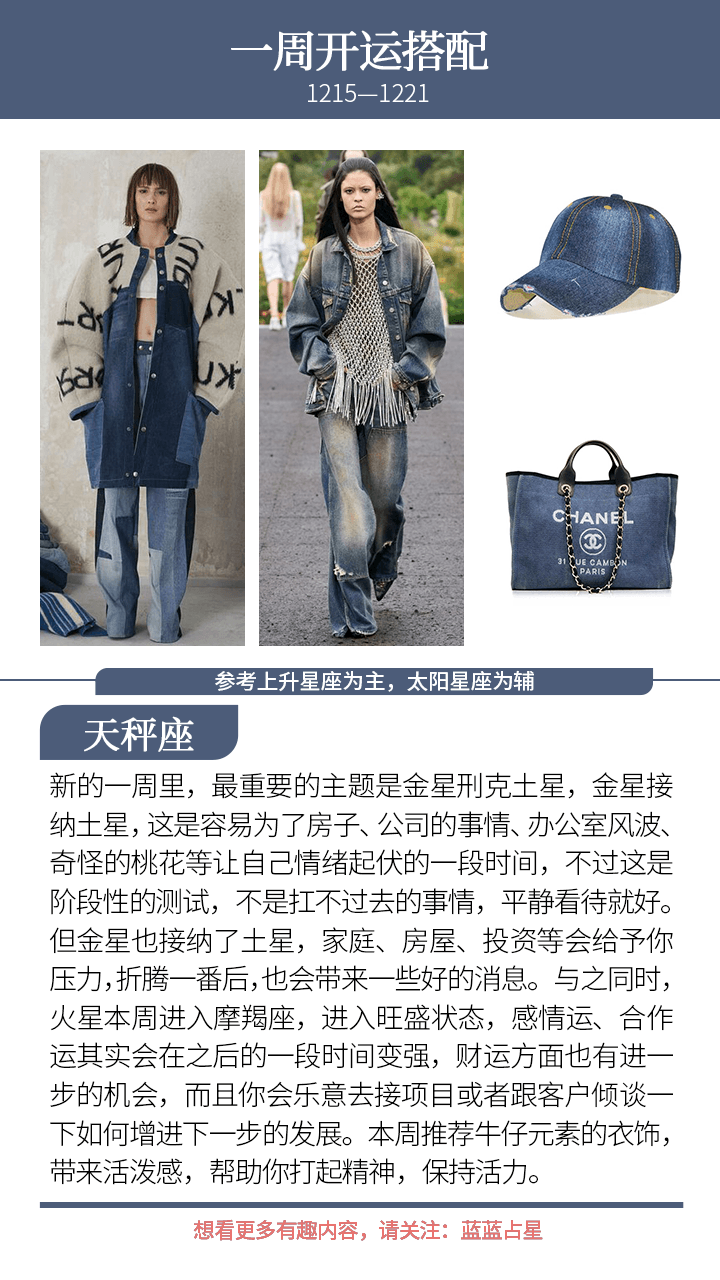 此外,本周还有一个不利星象,金星和土星怼了起来。两者力量都很强,我们在感情、金钱上很容易出现某些挣扎感,有一种被抗击的感觉;或者是想要一个满意的答案,却总是遇到一些难以搞定的现实难题。