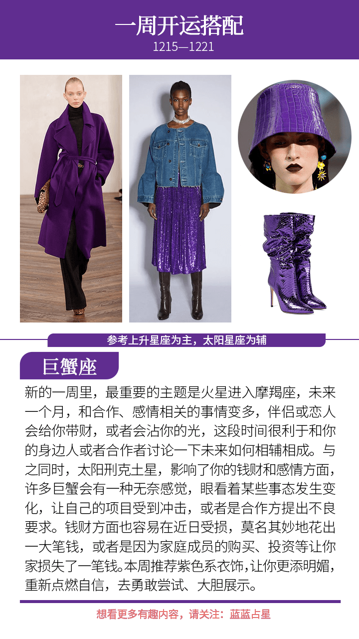 *参考上升星座为主,太阳星座为辅